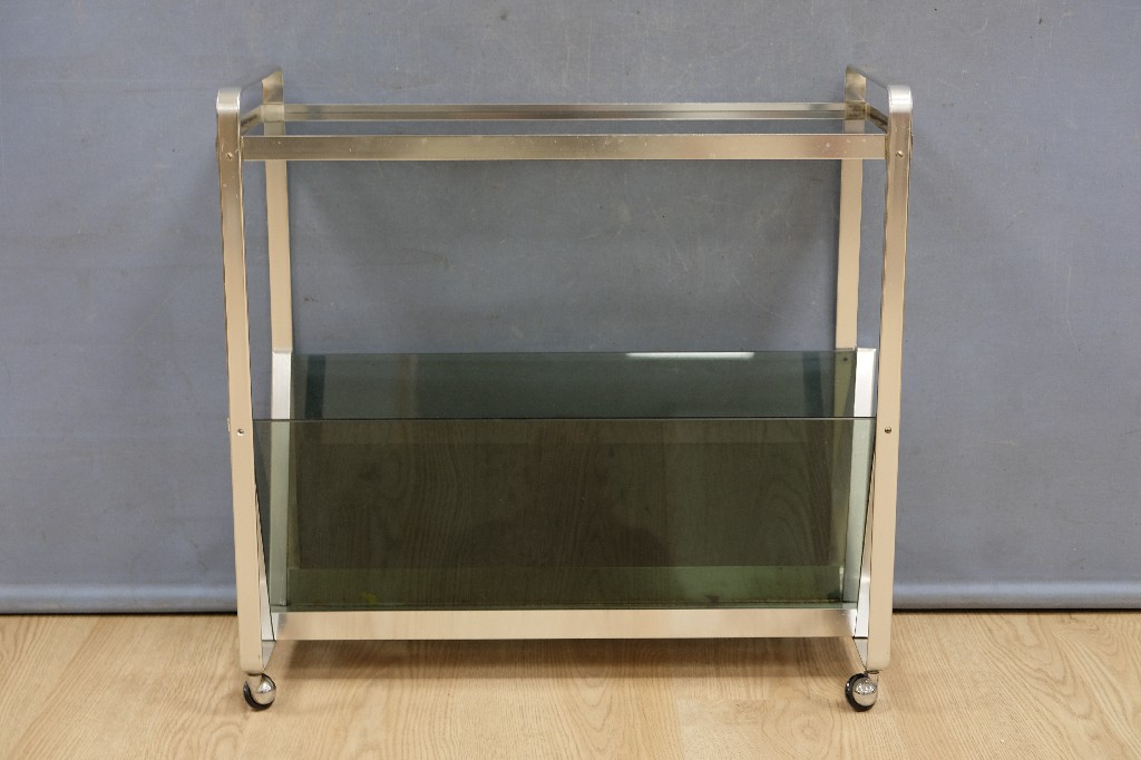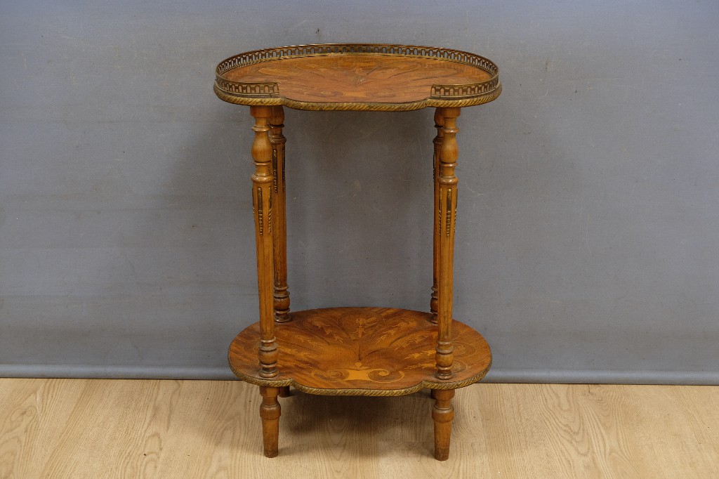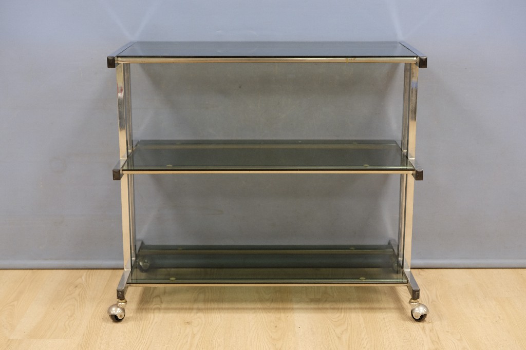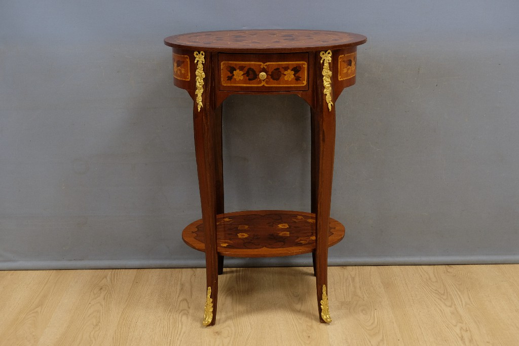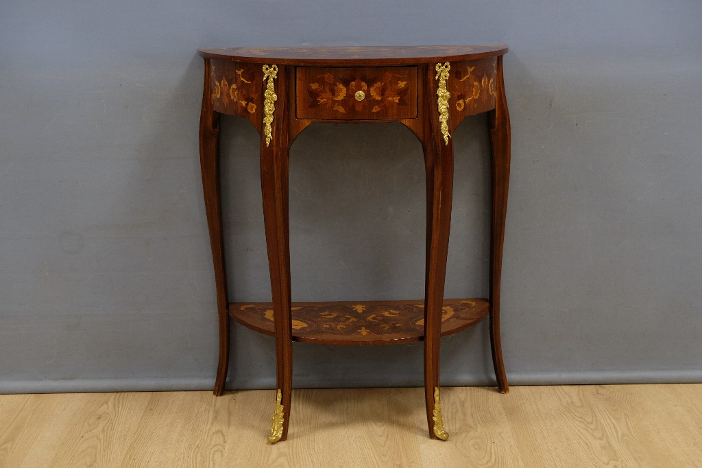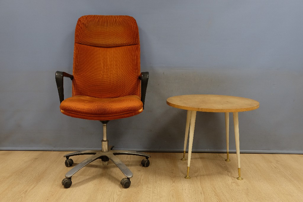 Fauteuil vintage et table d' appoint design, piétement en laiton, tablette en bois (H:52 et Ø : 65cm) | 40 - 60 € | Sélectionner |