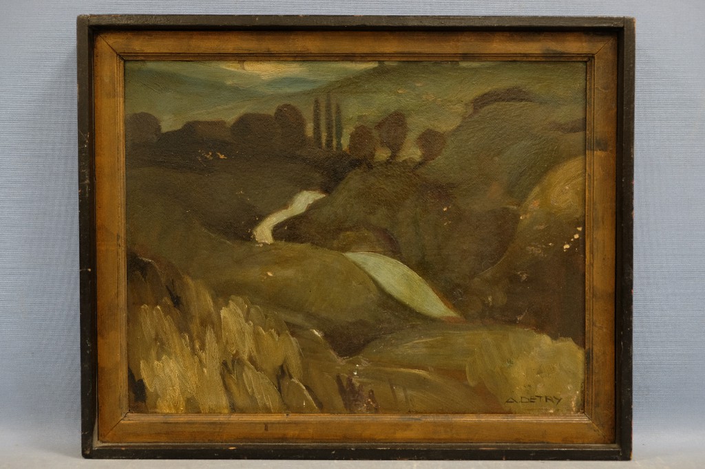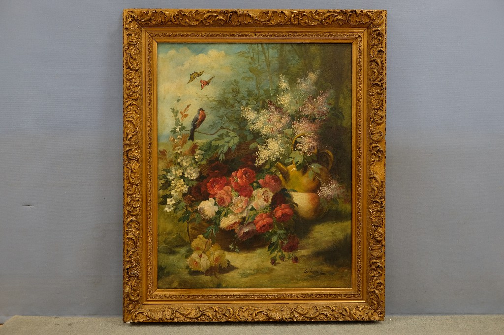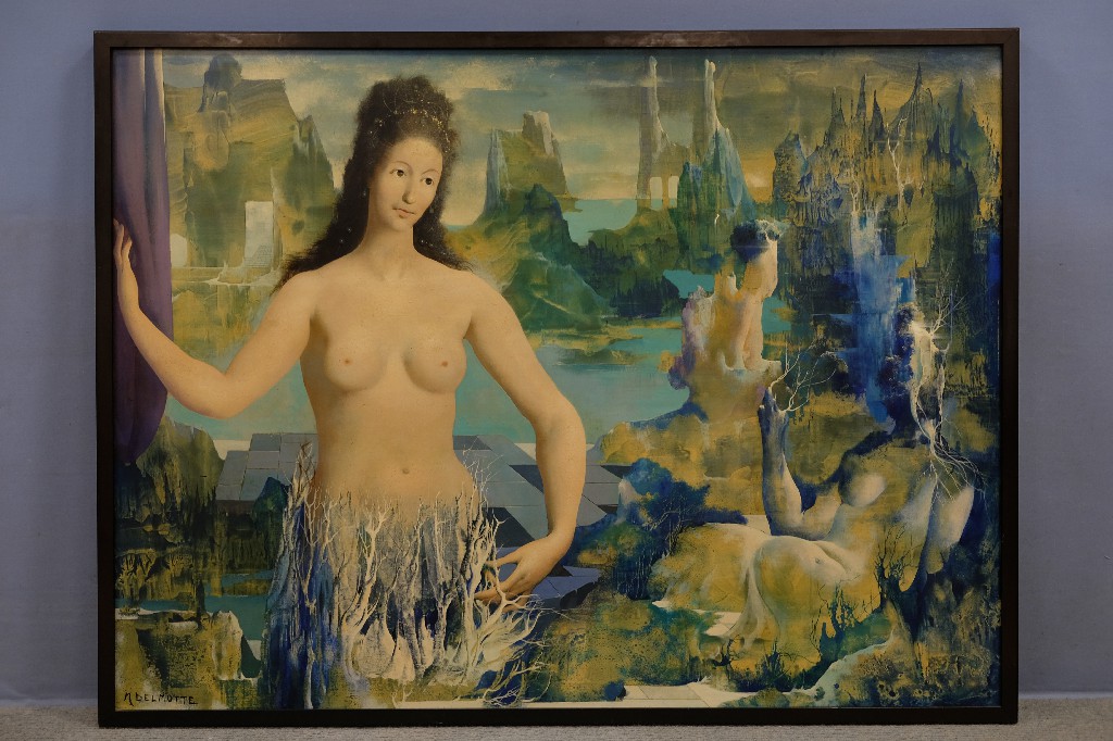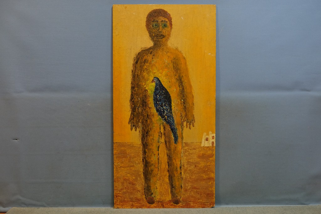 « L' oiseau bleu » huile sur panneau, artiste anonyme (122x61) | 40 - 60 € | Sélectionner |