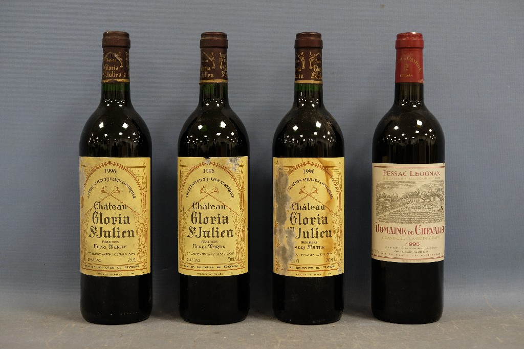 Château Gloria, Saint-Julien 1996 (3 bouteilles) et Domaine de Chevalier, Pessac-Léognan 1995 (1 bouteille) | 150 - 200 € | Sélectionner |
