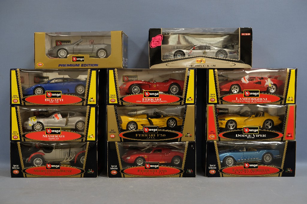 Lot de 11 voitures à l' échelle 1/18 de marque BURAGO, dans leurs boîtes d' origine (état neuf) | 150 - 200 € | Sélectionner |