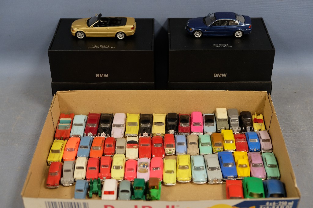 Lot de voitures miniatures à l' échelle 1/86 de marque Mini-cars et de marque Norev + 2 voitures miniatures de marque BMW | 40 - 60 € | Sélectionner |