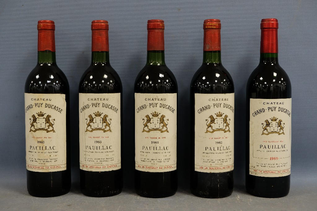 Château Grand-Puy Ducasse, Pauillac 1983 (4 bouteilles) et 1989 (1 bouteille) | 100 - 150 € | Sélectionner |