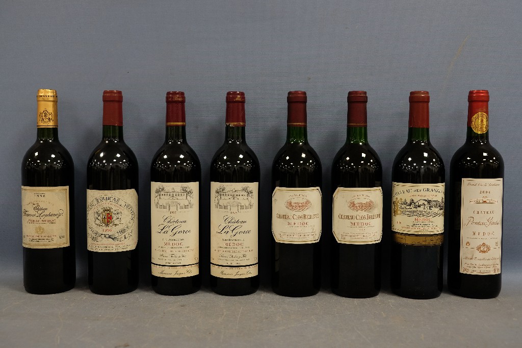 LISTRAC-MEDOC : Château Fourcas Loubaney 1996 (1 bouteille), Château Fourcas Hosten 1996 (1 bouteille) et MEDOC : Château La Gorce 1995 (2 bouteilles), Château Clos Bellevue 1995 (2 bouteilles), Château Des Granges d'Or 1995 (1 bouteille) et Château Pontac Gadet 2004 (1 bouteille) | 100 - 150 € | Sélectionner |