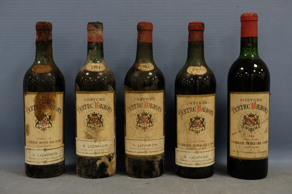 Château Tertre Daugay, Saint-Emilion grand cru classé 1961 (4 bouteilles) et 1962 (1 bouteille) | 150 - 200 € | Sélectionner |