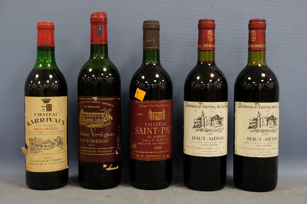 HAUT-MEDOC : Château Larrivaux 1975 (1 bouteille), Château Verdignan 1985 (1 bouteille), Château Saint-Paul 1986 (1 bouteille) et Château Plantey-de-la-Croix 1995 (2 bouteilles) | 200 - 300 € | Sélectionner |