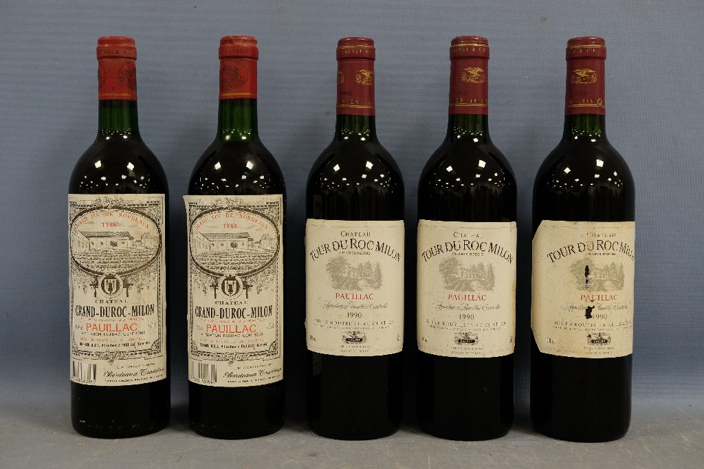 PAUILLAC : Château Grand-Duroc-Milon 1988 (2 bouteilles) et Château Tour du Roc Milon 1990 (3 bouteilles) | 100 - 150 € | Sélectionner |
