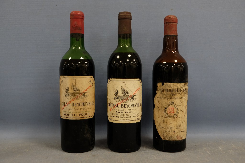 Château Beychevelle, Saint-Julien 1964 (1 bouteille), 1980 (1 bouteille) et Château Léoville-Las-Cases, Saint-Julien 1952 (1 bouteille) | 200 - 300 € | Sélectionner |