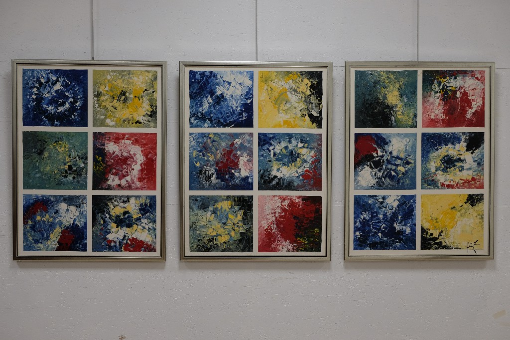 « Composition », triptyque, huiles sur toile signée Daniel HANNOT (80x60) | 50 - 100 € | Sélectionner |