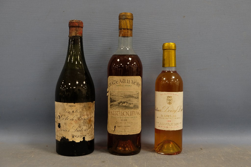Vin fin de la Côte de Beaune, Louis Latour 1929, Château La Nère, grand premier cru, Haut-Loupiac 1955 et Château Doisy Daëne, Barsac 1998 (375ml) | 80 - 120 € | Sélectionner |