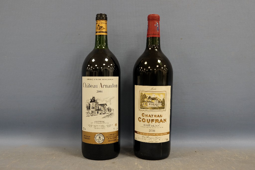 Château Arnauton, Fronsac 2001 (1 magnum) et Château Coufran, Haut-Médoc 2003 (1 magnum) | 50 - 100 € | Sélectionner |