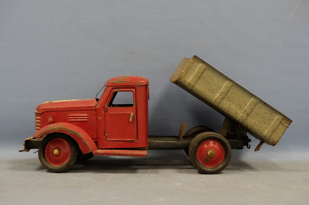 Ancien camion-benne en tôle, système à manivelle, vers 1950 (20,5x54 cm) | 80 - 120 € | Sélectionner |